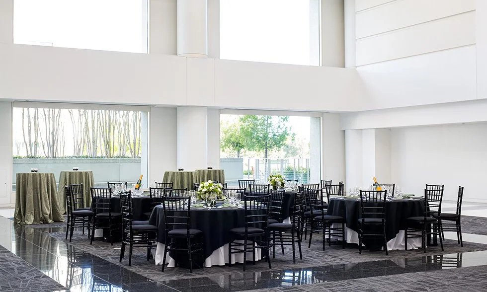 With clean-lined, modern interiors that complement the building architecture and its beautifully green surroundings, our spaces are well-suited for leisurely events such as private parties, weddings, receptions, after-work socials, and more.